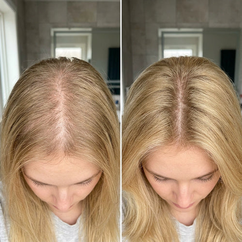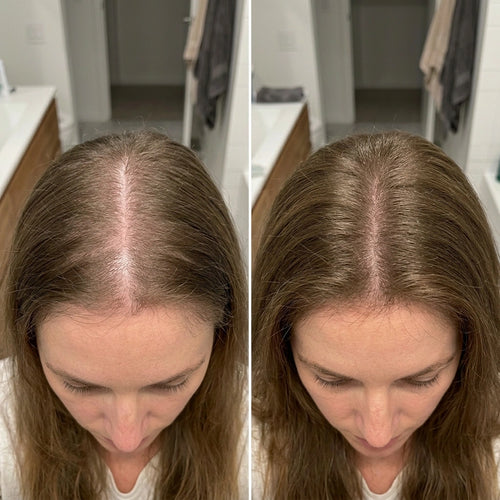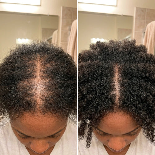 Most women notice reduced shedding within 2–3 weeks and visible baby hairs within 4–8 weeks. Full results typically appear at 3–6 months of consistent use.